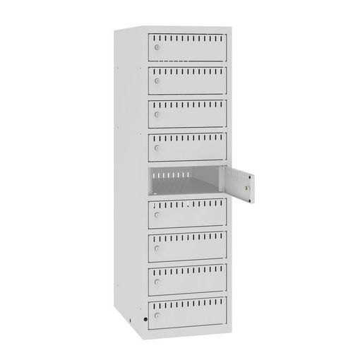 Välj mellan skåp utrustat med sex eller 9 fack, varav samtliga försedda med ett eluttag för effektiv laddning.