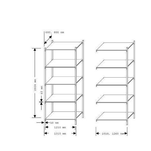Lagerhylla Combi-Plus: Grundsektion finns i konfiguration med hyllor av rörprofil eller hela hyllplan i stålplåt.