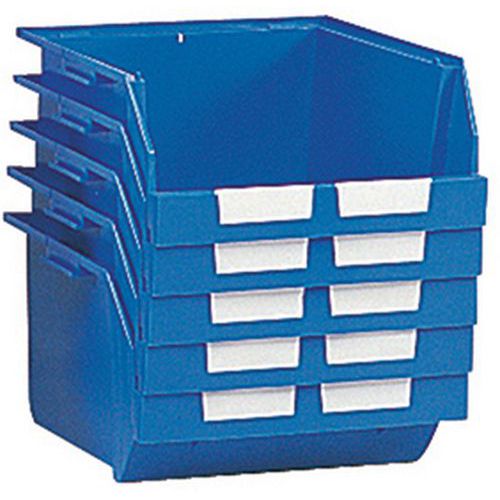 Modulback som kan staplas (fylld och tom) med andra backar av samma modell.