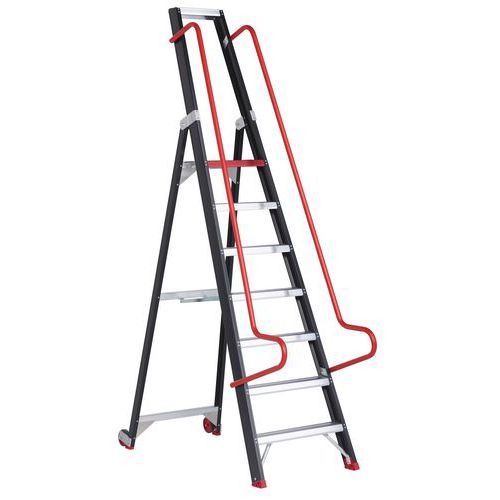 - Lättflyttad lagerstege med fasta hjul bak.