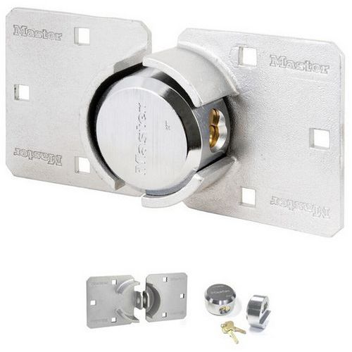 - Lås för transportfordon med dolt bygellås och kraftig hasp i härdat stål, 230 mm.