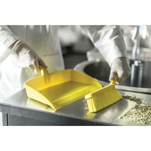 Mjuk fiber liten borste med ergonomiskt handtag. Använd med sopskyffeln för att ta bort fina partiklar.