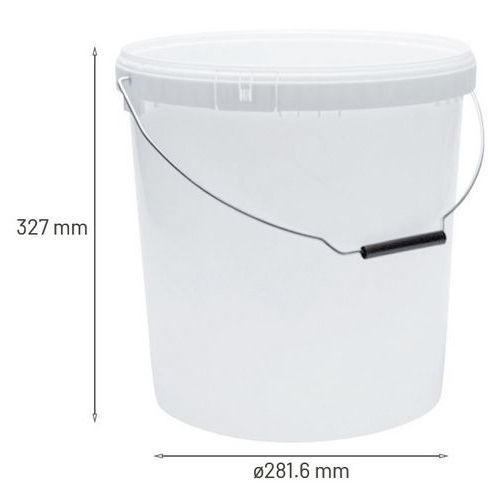 Livsmedelsgodkänd plasthink med lock - kan staplas i varandra när de är tomma. Utrustad med förseglingsflik. Stapla inte hinkarna medan de fortfarande är varma. Levereras med lock.