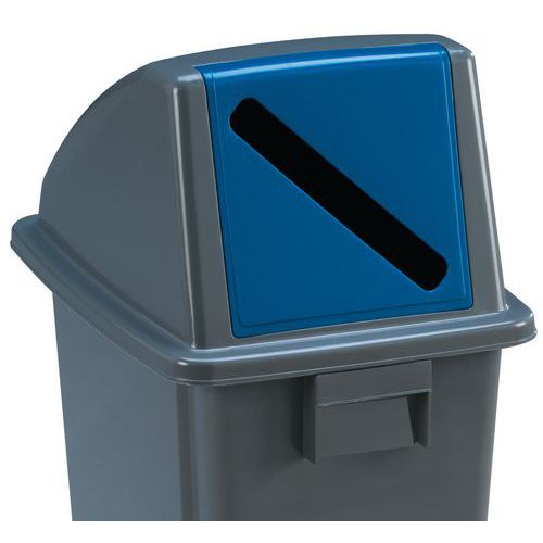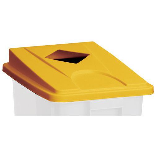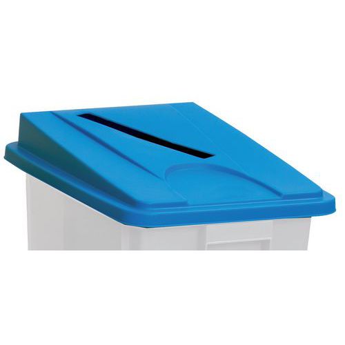 Lock till Avfallsbehållare Manutan. Gör det enkelt att källsortera avfallet i enbart avsedda avfallsbehållare. Finns i flera olika modeller: vipplock, med pappersöppning, för flaskor, för burkar samt för papper. Passar både 60- och 80-litersversionen av Avfallsbehållare, utan lock - Manutan (artikelnummer: 48768 & 48769).