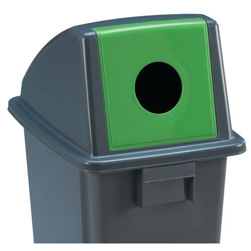 Lock till Avfallsbehållare Manutan. Gör det enkelt att källsortera avfallet i enbart avsedda avfallsbehållare. Finns i flera olika modeller: vipplock, med pappersöppning, för flaskor, för burkar samt för papper. Passar både 60- och 80-litersversionen av Avfallsbehållare, utan lock - Manutan (artikelnummer: 48768 & 48769). Sortering Garanti : 10 år