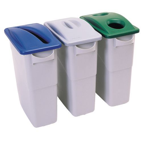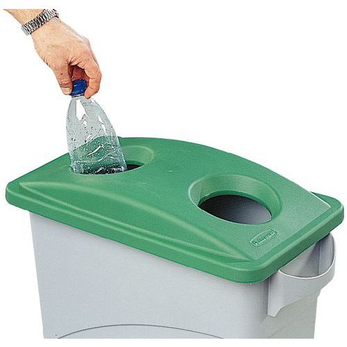 - Lock med olika öppningar och färger hjälper till med avfallssorteringen.