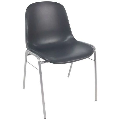 Stapelbar lunchrumsstol / skalstol (10 stolar kan staplas på varandra). Halksäkra möbeltassar. Robust, helgjuten sits i formsprutad polypropen. Perfekt för att sätta färg på dina möten eller göra miljön i lunchrummet lite roligare.