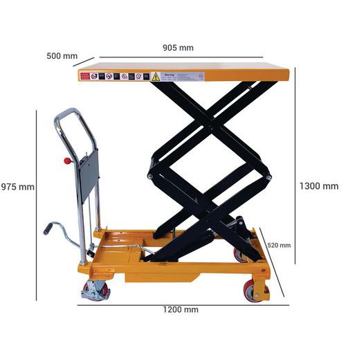 Lyftvagn 350 kg, Kapacitet: 350 kg, Skiva, maximal höjd: 1300 mm, Skiva, minimal höjd: 350 mm