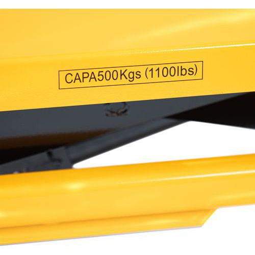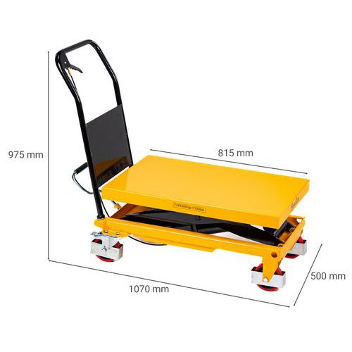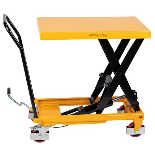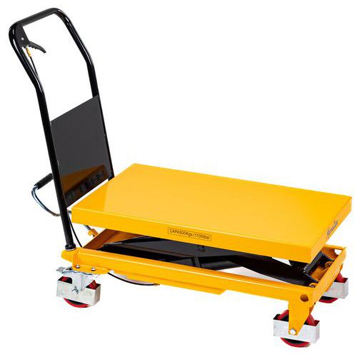 | Varunamn | Lyftvagn 500 kg, Kapacitet: 500 kg, Skiva, maximal höjd: 895 mm, Antal pedalslag för maximal höjd: 50 |