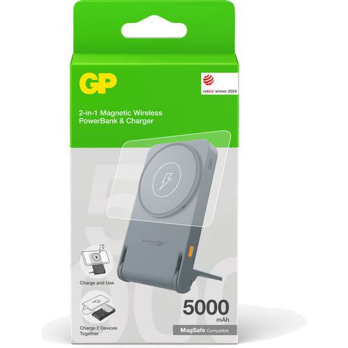 Magnetic Safe 2-in-1, 5000mAh powerbank & trådlös laddare - GP