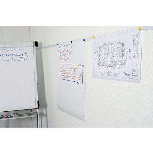- Idealiska för tillfällig upphängning av ett eller flera pappersark.