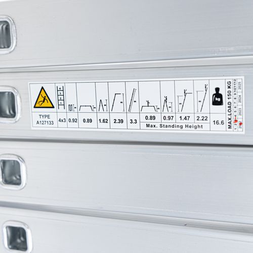 | Varunamn | Mångsidig aluminiumstege, Material: Aluminium, Höjd, utfälld: 3.3 m, Åtkomsthöjd, utfälld: 4.20 m |