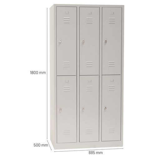 Uni med sockel är en serie små klädskåp/småfacksskåp där man själv kan konfigurera sitt skåp efter hur många fack man behöver, 2 till 15 per skåp. Skåpen är utrustade med dörrar med osynliga gångjärn, kuddar som dämpar ljud vid användning samt ventilation både upp- och nedtill på framsidan av dörrarna för att hålla luften i skåpen fräsch. Perfekt för alla slags miljöer där man behöver förvara allt från kläder, väskor och andra tillhörigheter. Småfackskåp Uni har hål i baksidan av skåpen för att kunna fästat i vägg - perfekt för den som vill ha en stabil och säker installation. Skåpen levereras monterat och utan lås - välj till cylinderlås med två nycklar eller klinka för hänglås samt hänglås. Garanti : 10 år Plåt, tjocklek : 7/10e
