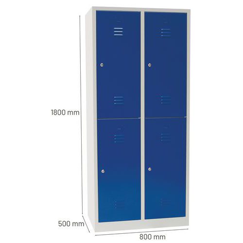 Uni med sockel är en serie små klädskåp/småfacksskåp där man själv kan konfigurera sitt skåp efter hur många fack man behöver, 2 till 15 per skåp. Skåpen är utrustade med dörrar med osynliga gångjärn, kuddar som dämpar ljud vid användning samt ventilation både upp- och nedtill på framsidan av dörrarna för att hålla luften i skåpen fräsch. Perfekt för alla slags miljöer där man behöver förvara allt från kläder, väskor och andra tillhörigheter. Småfackskåp Uni har hål i baksidan av skåpen för att kunna fästat i vägg - perfekt för den som vill ha en stabil och säker installation. Skåpen levereras monterat och utan lås - välj till cylinderlås med två nycklar eller klinka för hänglås samt hänglås.