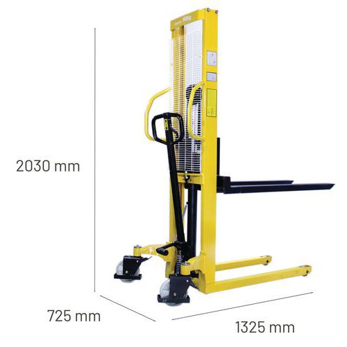 | Varunamn | Manuell staplare 500 kg, Kapacitet: 500 kg, Maximal lyfthöjd: 1600 mm, Längd totalt: 1650 mm |