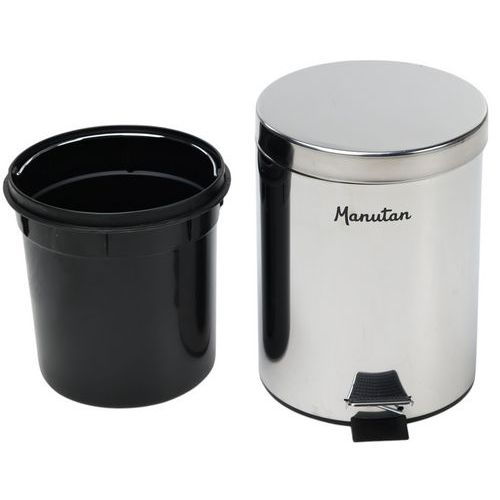 Soptunna med innerbehållare. Grepphandtaget gör den enkel att tömma. Gummiunderdel som skyddar golvet.. Korrosionsbeständig. Alla Manutan-produkter har testats och godkänts av våra team.