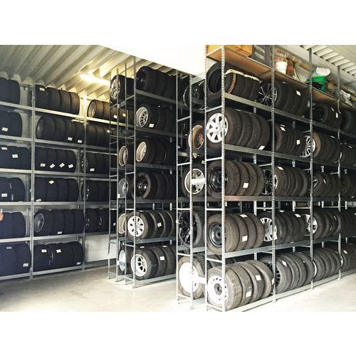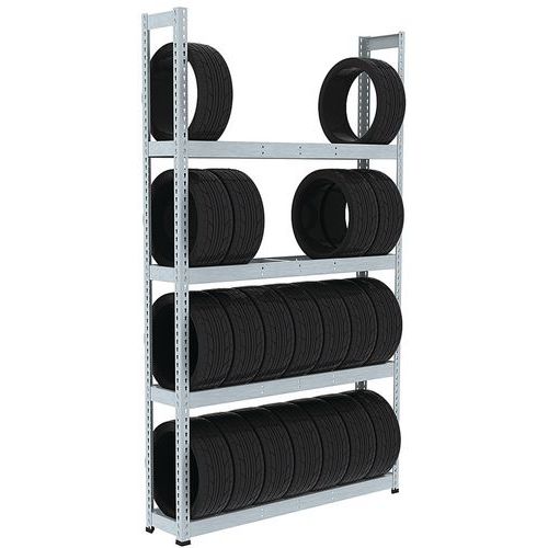 Däckhyllor i solid metall, enkel- och dubbelsidiga. Finns i tre olika ytbehandlingar: blå eller grå epoxifärg eller zinkpläterad. Lättmonterade lagerhyllor, utan behov av specialverktyg. Alla Manutan-produkter har testats och godkänts av våra team.