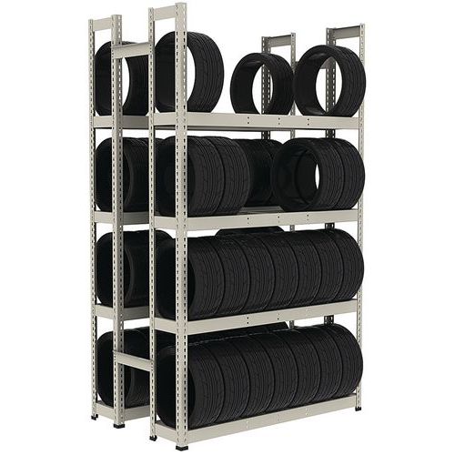 Däckhyllor i solid metall, enkel- och dubbelsidiga. Finns i tre olika ytbehandlingar: blå eller grå epoxifärg eller zinkpläterad. Lättmonterade lagerhyllor, utan behov av specialverktyg. Alla Manutan-produkter har testats och godkänts av våra team.