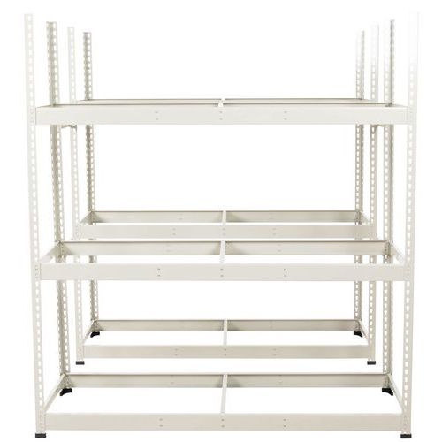 Däckhyllor i solid metall, enkel- och dubbelsidiga. Finns i tre olika ytbehandlingar: blå eller grå epoxifärg eller zinkpläterad. Lättmonterade lagerhyllor, utan behov av specialverktyg. Alla Manutan-produkter har testats och godkänts av våra team.