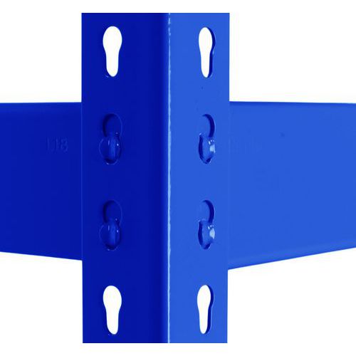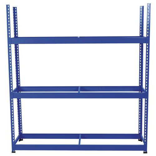 Däckhyllor i solid metall, enkel- och dubbelsidiga. Finns i tre olika ytbehandlingar: blå eller grå epoxifärg eller zinkpläterad. Lättmonterade lagerhyllor, utan behov av specialverktyg. Alla Manutan-produkter har testats och godkänts av våra team.