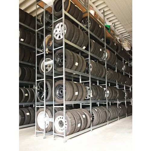 - Solid lagerhylla i metall för förvaring av däck.