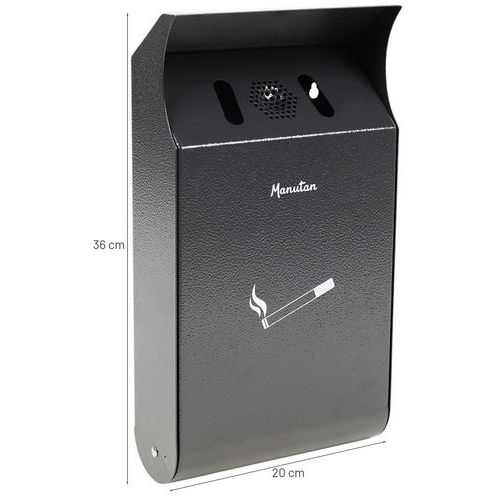 - Högkvalitativt, pulverlackerat stål, ljus- och mörkgrå askkopp för väggmontering.