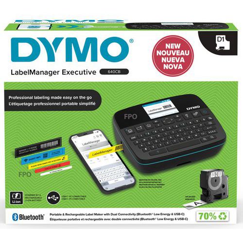 Professionell etikettmaskin LabelManager® Executive LM640 CB QWY från Dymo, mångsidig och uppladdningsbar.