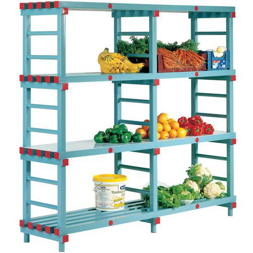 Öppna hyllor för god luftcirkulation. Tillbehör till Plasthylla Poly-Store.