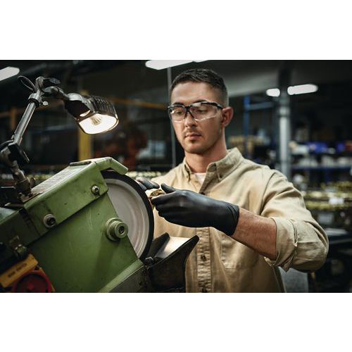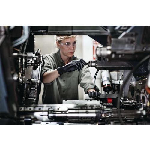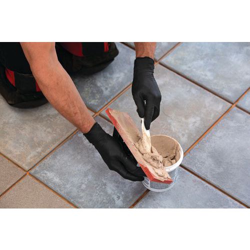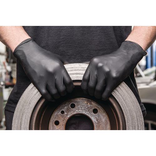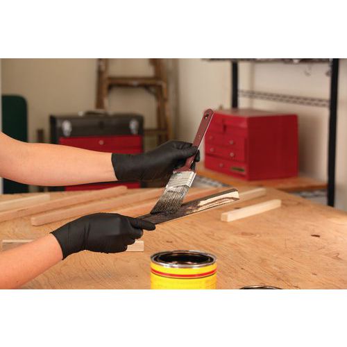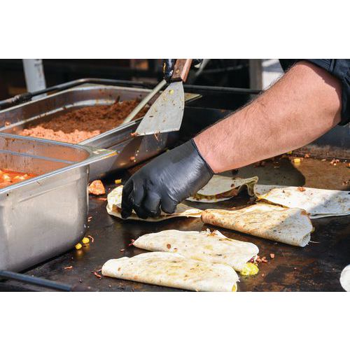 Svarta latex- och puderfria handskar för skydd mot kemikalier och vätskor. Hel beläggning, med en icke-skummande formel för ett fast grepp vid hantering av våta föremål. Minskad risk för hudirritation eller allergi. Icke-skummande design för enklare hantering av föremål i fuktiga miljöer. Helt texturerad yta för ett säkert grepp. Godkänd för livsmedelshantering: Även lämplig för många tillämpningar inom livsmedelsindustrin.