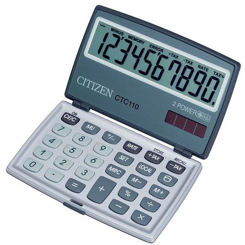 | Varunamn | Miniräknare Citizen CTC-110, Typ: Ficka, Färg: Grå, Längd: 106 mm, Bredd: 65 mm, Tjocklek: 14 mm |