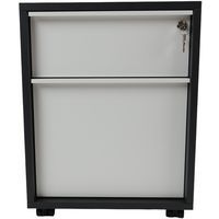 Misao mobilt skåp i melamin med 1 mm kanter. 2 lådor av melaminbrädor, en för hängmappar. Lådans höjd 8,6 cm och bredden 5 cm. Arkiveringslåda lämplig för A4- och skrivpapper. Central låsning utan anti-tiltmekanism. Handtag tillverkat av anodiserad aluminiumprofil. Maxbelastning per låda: 25 kg. Svänghjul med 37 mm diameter. Gjord i EU Garanti : 10 år
