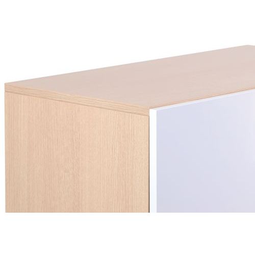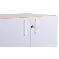 Skåp med gångjärnsdörrar tillverkade av 18 mm melamin med 1 mm ABS-kanter.