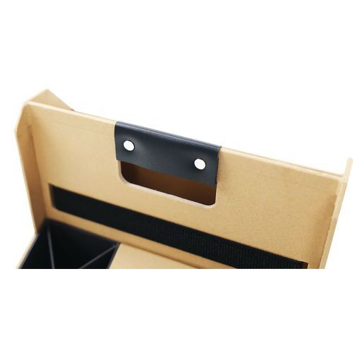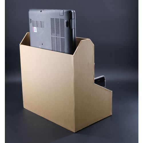 Tack vare kartongens kvalitet och robusthet (1200 g) kan den bära en vikt på upp till 4 kg (bärbar dator, 34x32 notebook, kompakt tangentbord, liten kontorsutrustning, etc.).