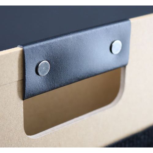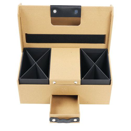 Finisher: dess färgglada harmoni och kvaliteten på dess material som läderhandtagen ger vår verktygslåda en touch av elegans och förfining på ditt skrivbord.
