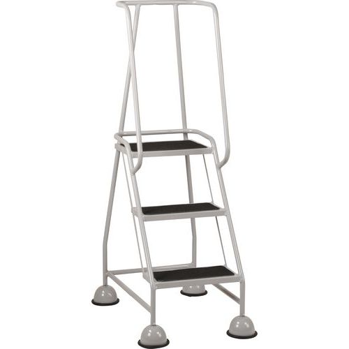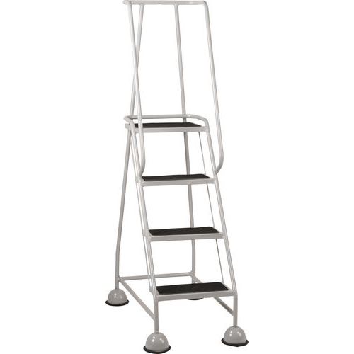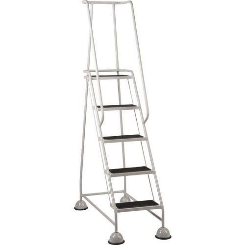 - Stabil och lättmanövrerad mobil trappa, tillverkad i epoxylackerat grått stål för lång hållbarhet och professionellt utseende.