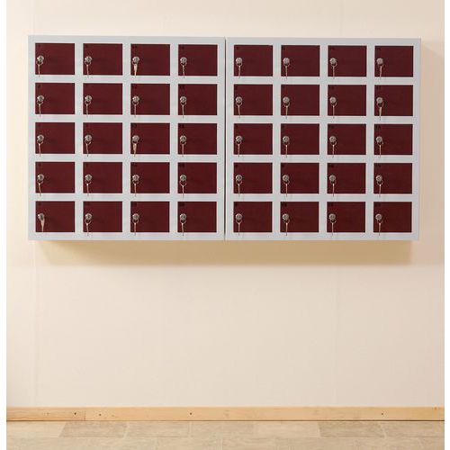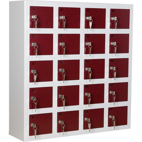 | Varunamn | Mobilförvaringsskåp, 20 fack, Material: Stål, Antal fack/pelare: 20, Bredd: 750 mm, Djup: 200 mm |