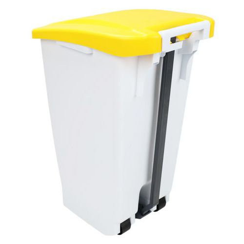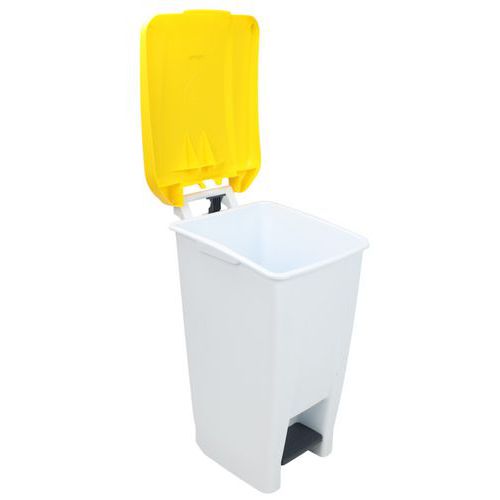 Mobilt kärl som hanteras enkelt med 2 smidiga hjul och transporthandtag. Bred pedal på framsidan för enkel öppning. Ergonomisk för enkel förflyttning. Färgade lock för sortering. Enkel att rengöra. Alla Manutan-produkter är testade och godkända av våra team.