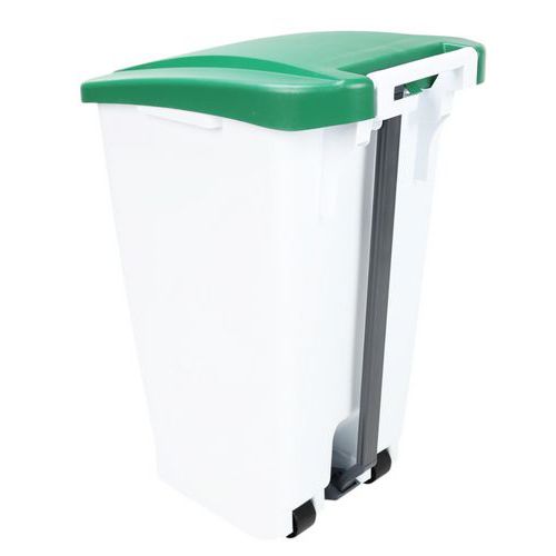 Mobilt kärl som hanteras enkelt med 2 smidiga hjul och transporthandtag. Bred pedal på framsidan för enkel öppning. Ergonomisk för enkel förflyttning. Färgade lock för sortering. Enkel att rengöra. Alla Manutan-produkter är testade och godkända av våra team.