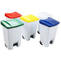 Mobilt kärl som hanteras enkelt med 2 smidiga hjul och transporthandtag. Bred pedal på framsidan för enkel öppning. Ergonomisk för enkel förflyttning. Färgade lock för sortering. Enkel att rengöra.