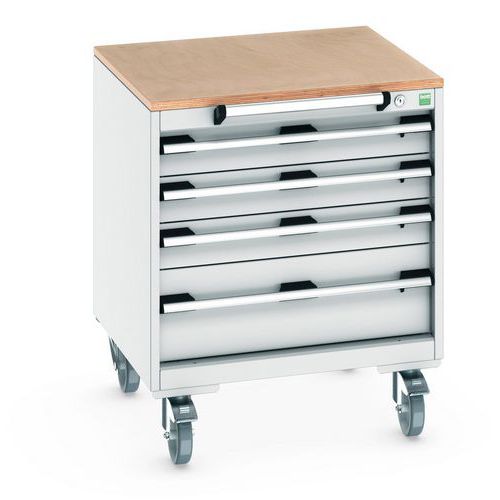 Lådor med säkerhetsspärr, lastkapacitet 50 kg. Modeller med en höjd på 785 mm kan förvaras under en bott cubio arbetsbänk för att bli ett mobilt skåp. 4 hjul - 2 fasta, 2 vridbara med broms. Gjord i UK Maximal last (kg) : 300