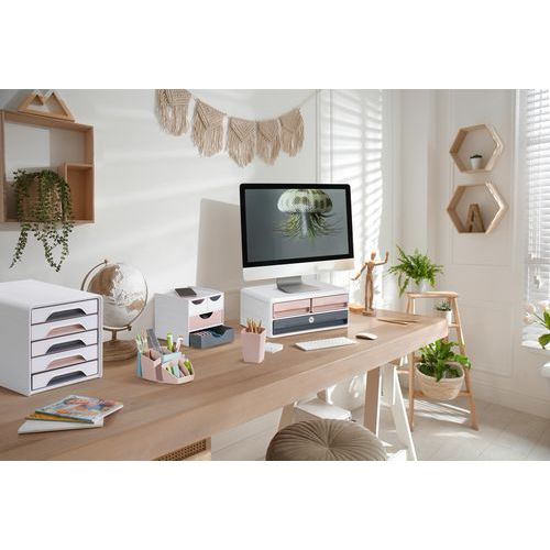 Idealisk för att förvara dina kontorsmaterial (pennor, kalkylator, A5-anteckningsblock, etc.) och datortillbehör (extern hårddisk, USB-nyckel, mus, etc.).