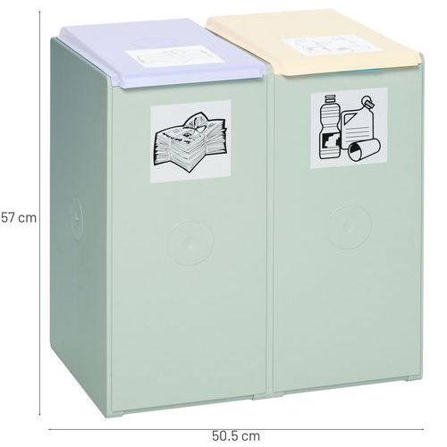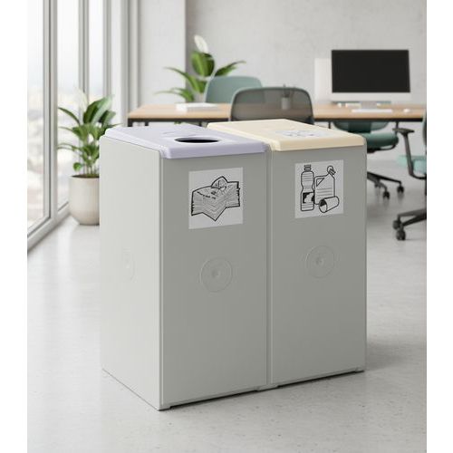 Modulsoptunna 40 liter, extra stark, av högkvalitativ plast för lång livslängd. Finns i flera konfigurationer, 1, 2, 3 eller 4 – perfekt för alla slags miljöer. Man kan enkelt själv skapa sin egen avfallssorteringsstation genom att beställa lock i olika färger, hink/insats och vagn (alla är tillbehör). Levereras tillsammans med självhäftande bilder för effektiv avfallssortering. Sortering av avfall enligt HACCP-principen, Röd = glas, Blå = papper, Gul = plast, Grön = organiskt avfall. Tillverkad i Tyskland Garanti : 3 år Sortering