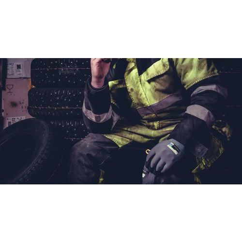 - Montagehandskar tillverkade av nylon/spandex med mikrokapillär nitrilskumbeläggning.