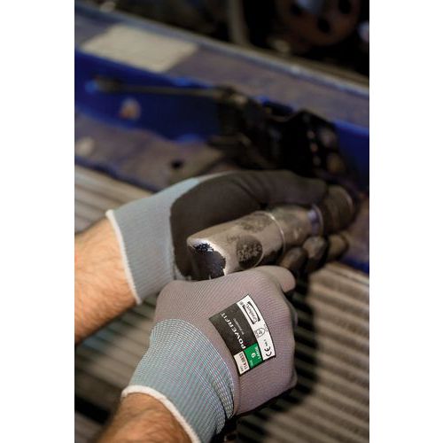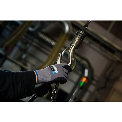 - Touchscreen-kompatibla montagehandskar i nylon/Spandex® med mikrokapillär nitrilskumbeläggning.