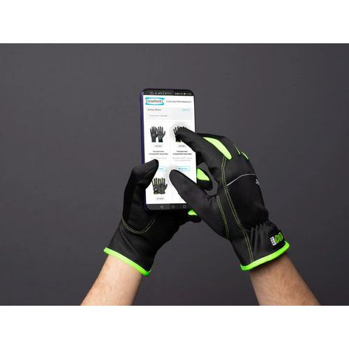 - Montagehandskar EX® i MicroSkin Shield® med greppmönster och ovanhand i polyester, touchscreen-kompatibla.