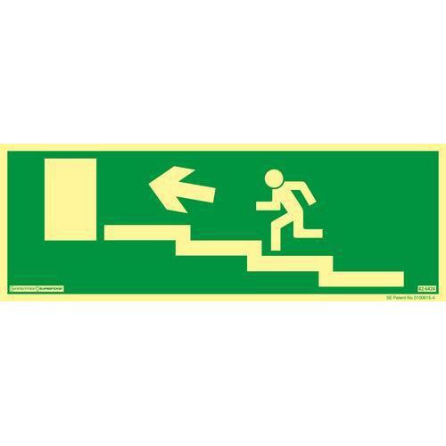 - Färgefterlysande skyltar av styrenplast, finns för nödutgångar, brandredskap och varningsskyltar.