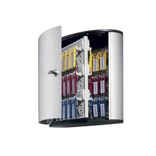 Nyckelskåp i aluminium. Skåpet skruvas på väggen från insidan av skåpet med medföljande skruv och plugg. På insidan av dörren finns en nyckelförteckning. Cylinderlås med 2 nycklar medföljer (gäller ej 24253). 6 nyckelbrickor ingår (2 blå, 2 svarta, 1 röd och 1 gul). Inbrottsfördröjande skåp: Ett inbrottsfördröjande skåp ger ett visst skydd vid angrepp, men är inte testat eller godkänt för detta. Skåpen bör inte användas för att skydda större värden.