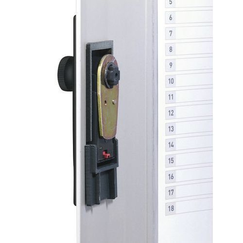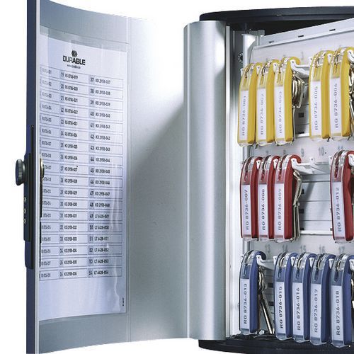 Designat nyckelskåp. Kan anpassas efter nycklarnas storlek tack vare vertikalt justerbara stänger. Garanterad säkerhet med kodlås. Funktionell 90° öppning. Justerbara kombinationer: 1000 möjliga kombinationer. Utöka kapaciteten genom att lägga till stänger på baksidan av den svängbara panelen. Levereras med 6 Key Clip nyckelringar i olika färger, en monteringssats och monteringsinstruktioner.