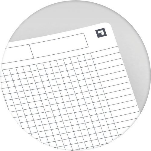 - Smårutat (5 mm) med rubrik och dubbla marginaler.