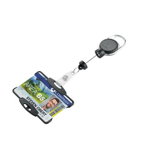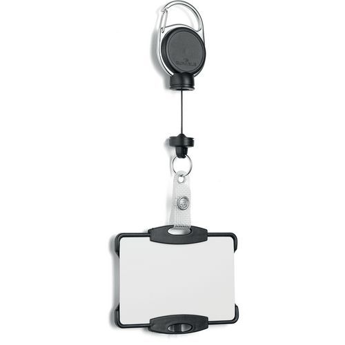 | Varunamn | Öppen brickhållare med extra stark rulle, Typ: Porte-badge, Färg: Svart, Längd: 135 mm, Bredd: 110 mm |